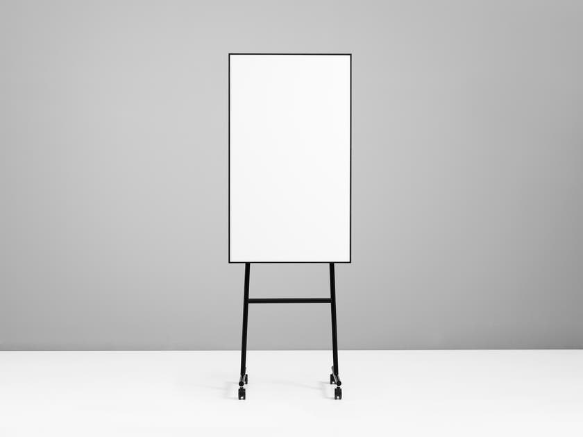 ONE Mobilt blädderblockställ / whiteboard med emaljerad skrivyta och blädderblockskrokar, med runda ben och en markerad ram som ger en karaktäristisk, enkel och tidlös känsla. Fyra hjul, varav två låsbara. Stativ och baksida har samma färg som ramen.