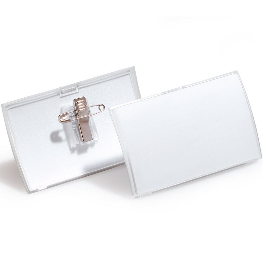 Dessa namnskyltar passar alla tillfällen och behov där en namnbricka behövs - listan kan göras lång då de passar för personal på mässor, i butiken, besökarna på företaget och säljare i serviceyrken. De är utrustade med en kombiklämma som ger valmöjligheten att fästa namnskylten med klämma eller säkerhetsnål. Namnbrickorna från Clic Fold serien är tillverkade av återvunnen plast med en vikbar kant med snäpplås för ett enkelt byte av etikett.