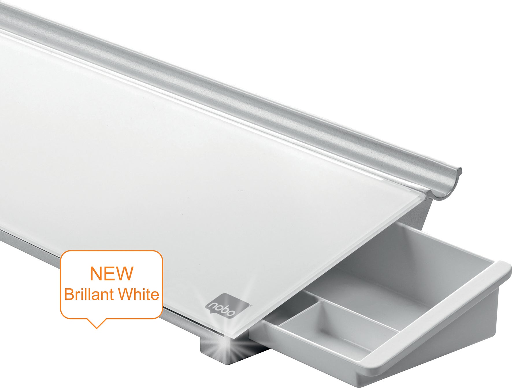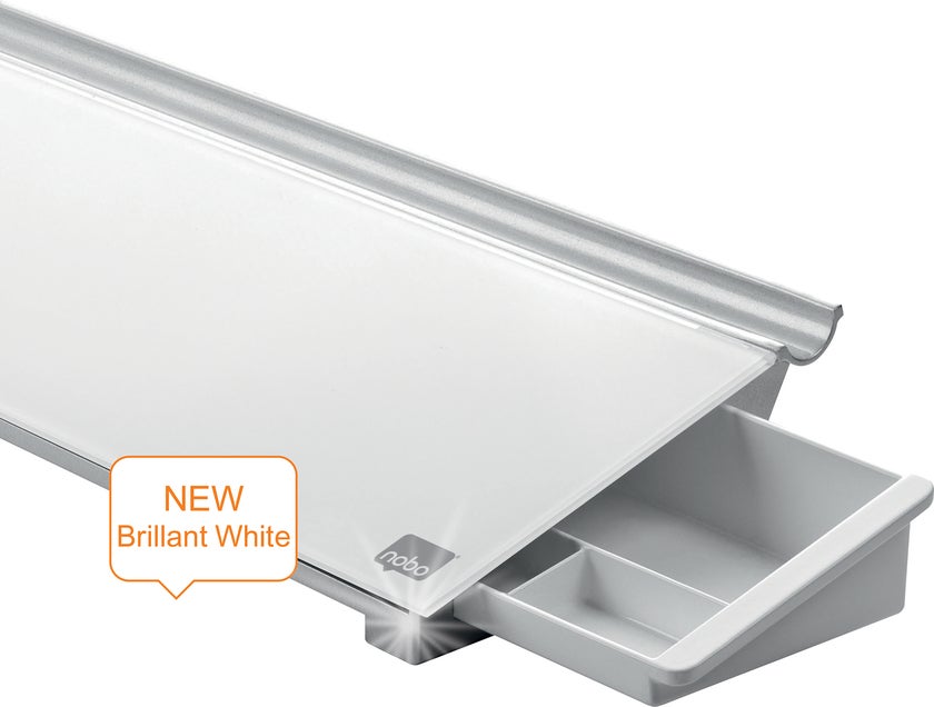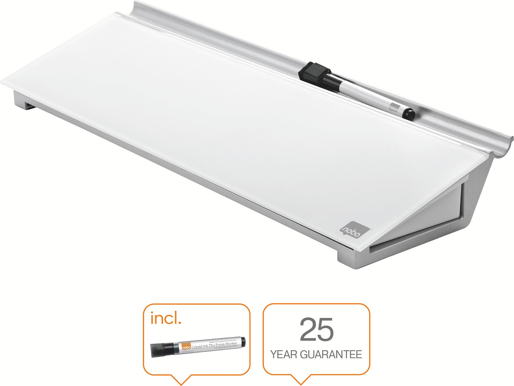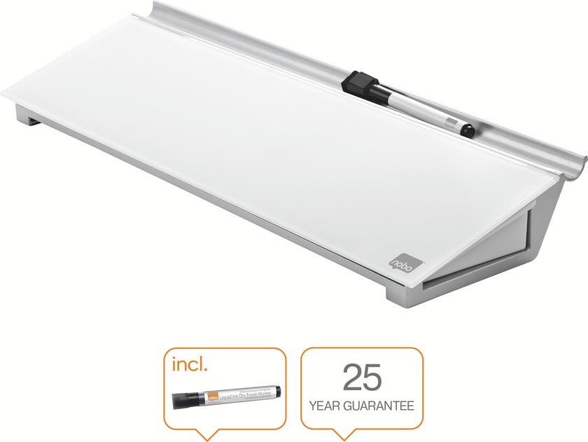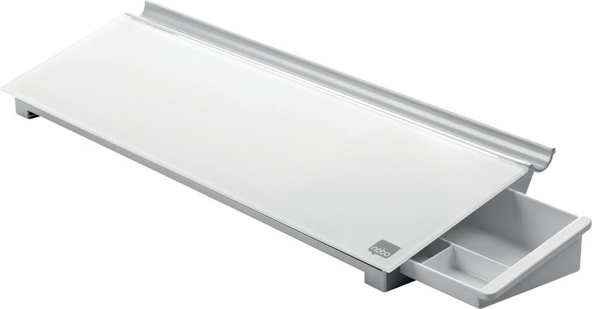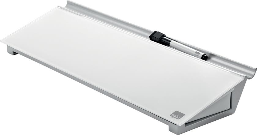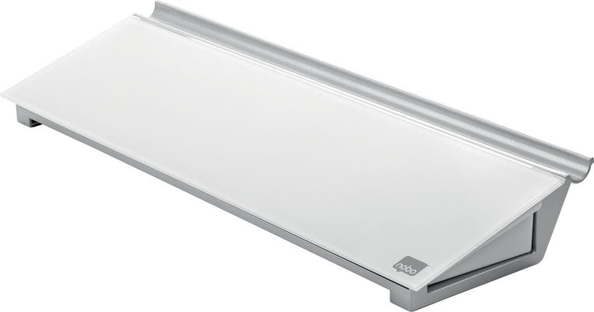 Skriv, torka av och börja på nytt. Placera memotavlan bakom tangentbordet och använd dess dolda lådor för att hålla skrivbordet städat. Levereras med en mini Nobo whiteboardpenna med en inbyggd tavelsudd i huven. Skrivytan är 46 x 12,5 cm.