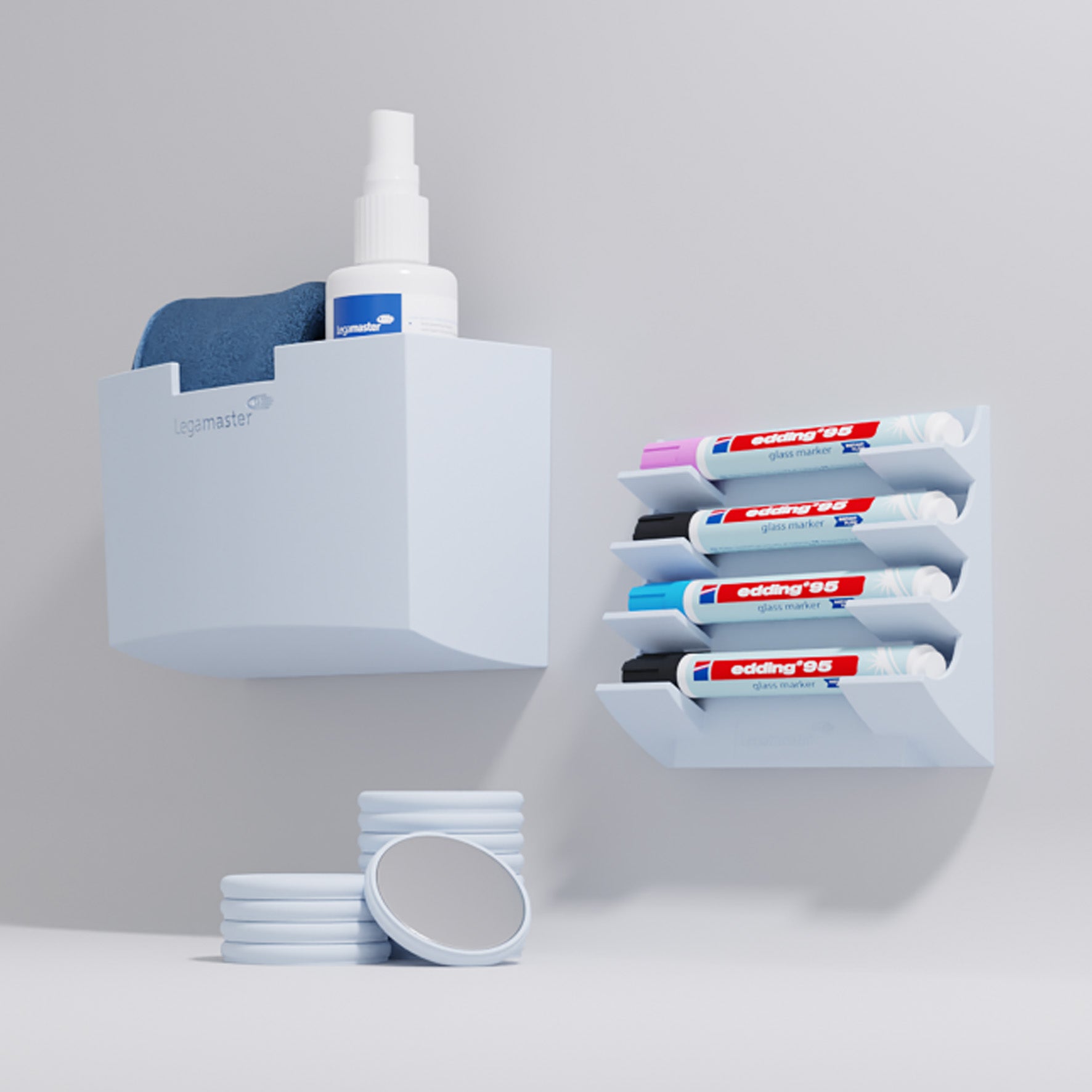 Magnetisk pennhållare för Legamasters glastavlor med magnetisk yta. Håller upp till fyra whiteboardpennor. Levereras med en extra stark neodymmagnet för användning på glastavlor. Matchar de exakta färgerna på Legamasters tavlor med matt yta: warm grey, chilly lake och sage green. Pennor ingår inte.