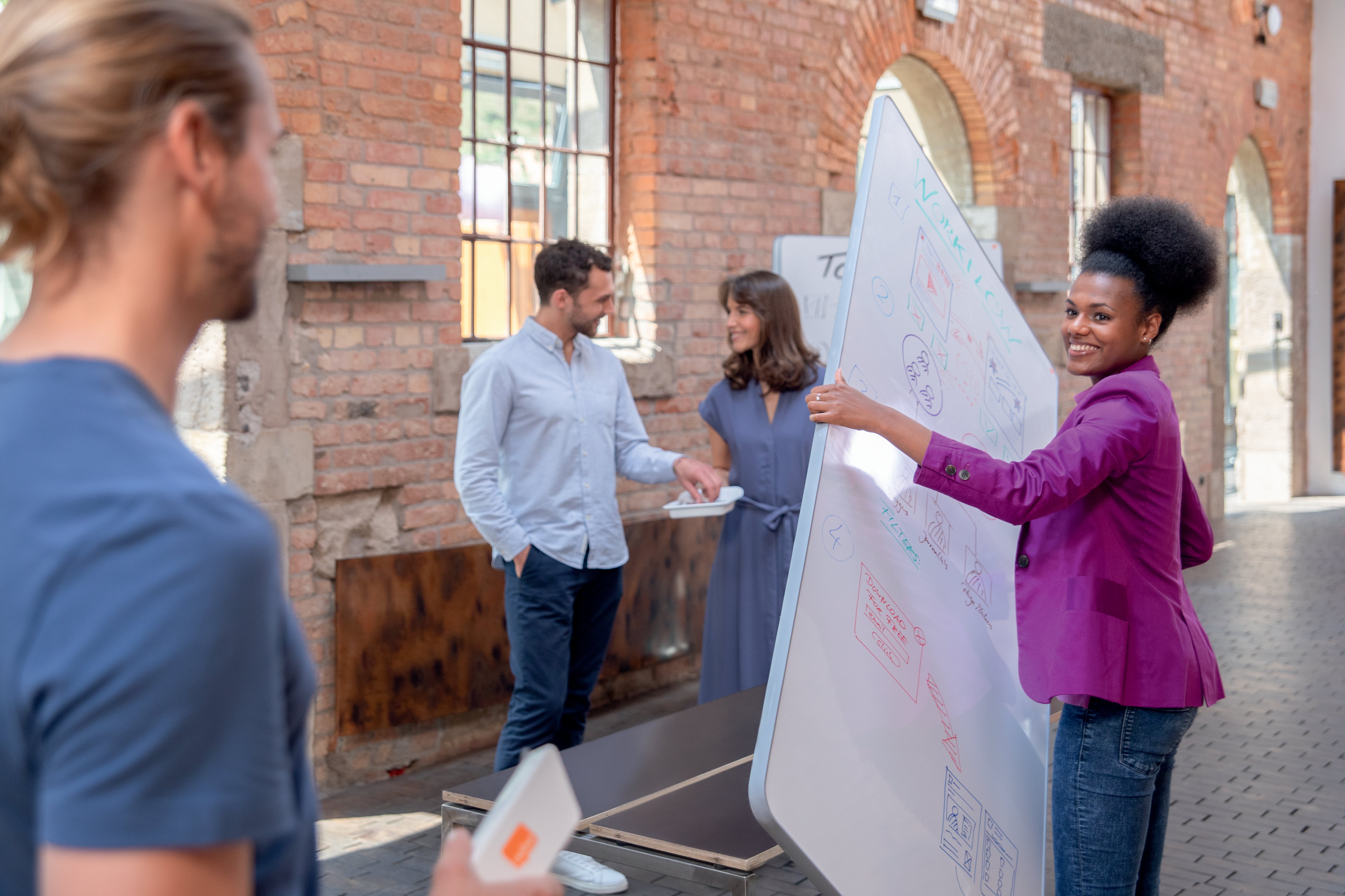Mobil Whiteboard - Move & Meet bassystem. Det mobila whiteboardsystemet Move & Meet erbjuder ultimat flexibilitet i alla arbetsmiljöer. Enkelt konfigurerade för att uppfylla dina behov. Inkluderar en mobil bas och 2 avtagbara dubbelsidiga, magnetiska whiteboardtavlor. Den mobila basen rymmer upp till 4 dubbelsidiga, lättviktiga whiteboardtavlor eller anslagstavlor. Extra tavlor kan köpas till för att skapa mer plats för era projekt och idéer. Med en stilren och innovativ hörndesign passar tavlorna in i de flesta miljöer. Startpaketet kommer med 4 whiteboardpennor, en sudd-duk i mikrofiber och två integrerade, avtagbara pennfack. Varje whiteboard är i storlek 1800x900 mm