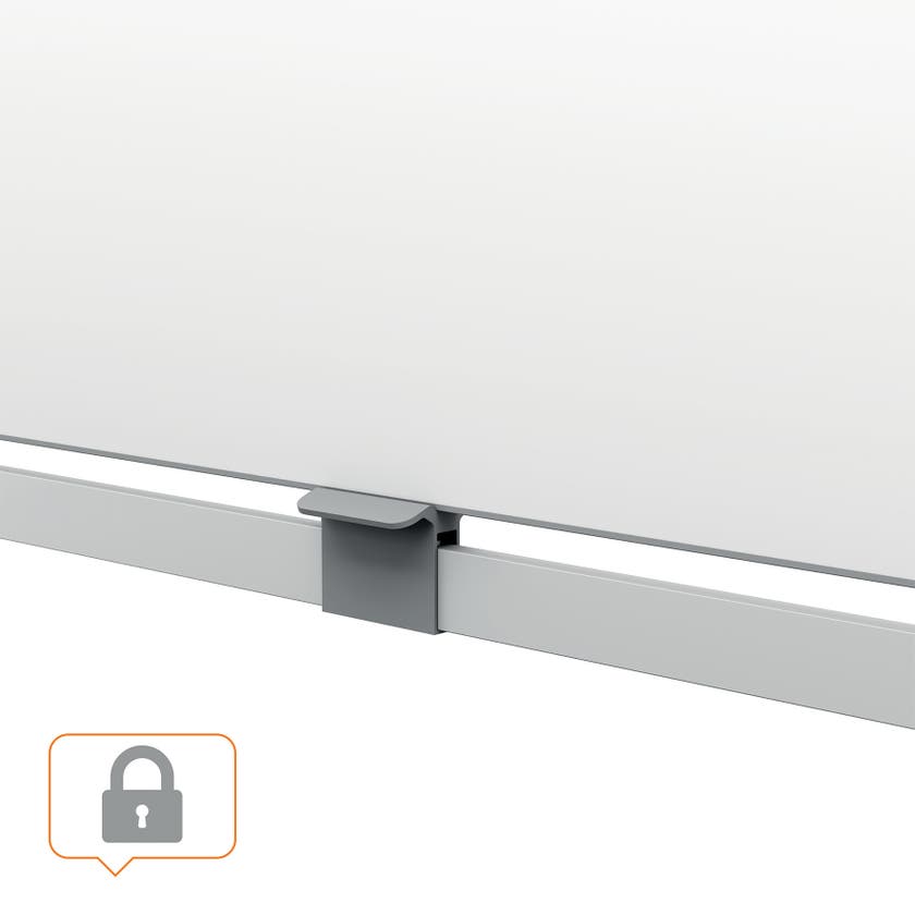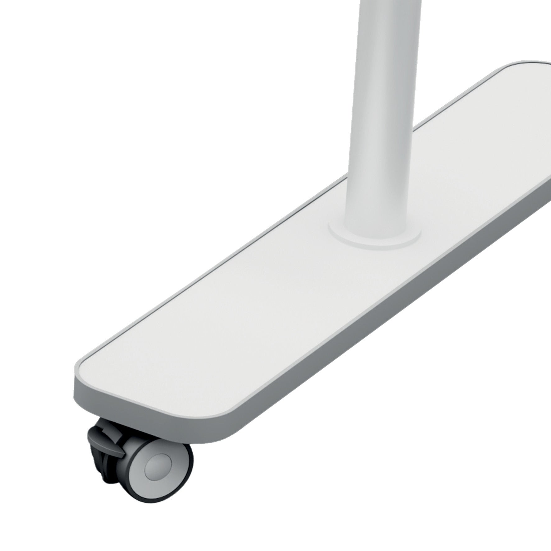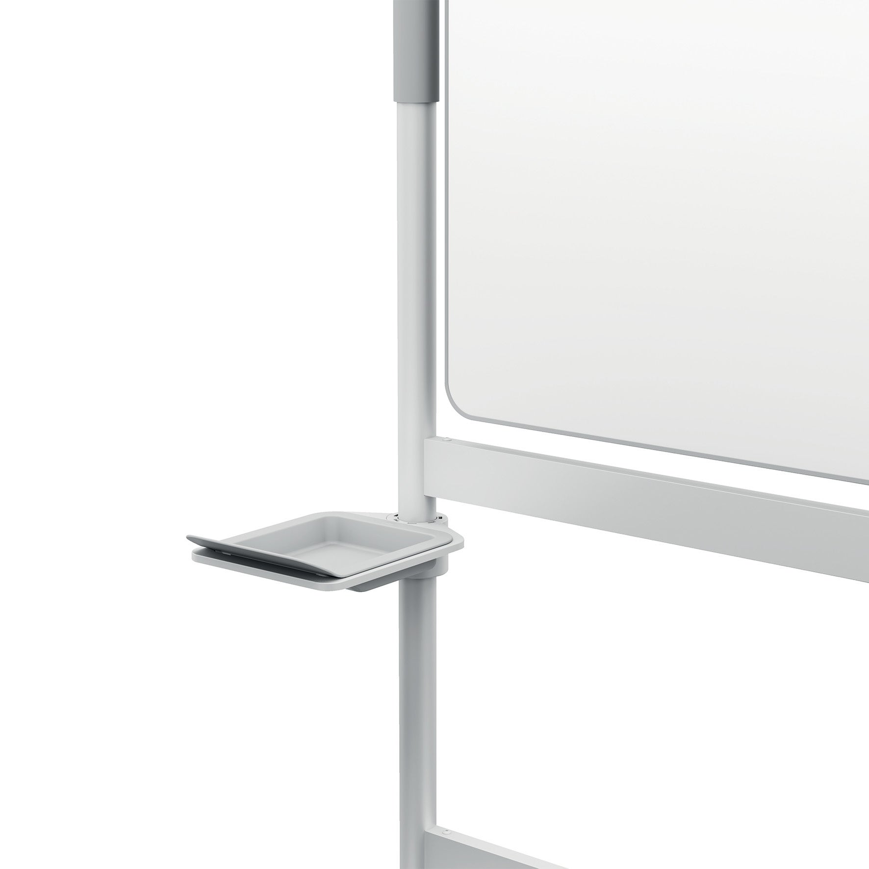 Whiteboardtavlan har en innovativ centrallåsfunktion, låsbara hjul och stabil plattformsbas. Inkluderar integrerad, avtagbar tillbehörslåda.
