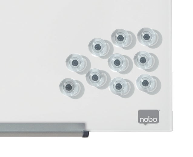 Magneter Earth från Nobo. Magneter för whiteboardtavlor i glas som lämpar sig för att visa anteckningar eller meddelanden på ett snyggt och säkert sätt på en magnetisk glastavla.