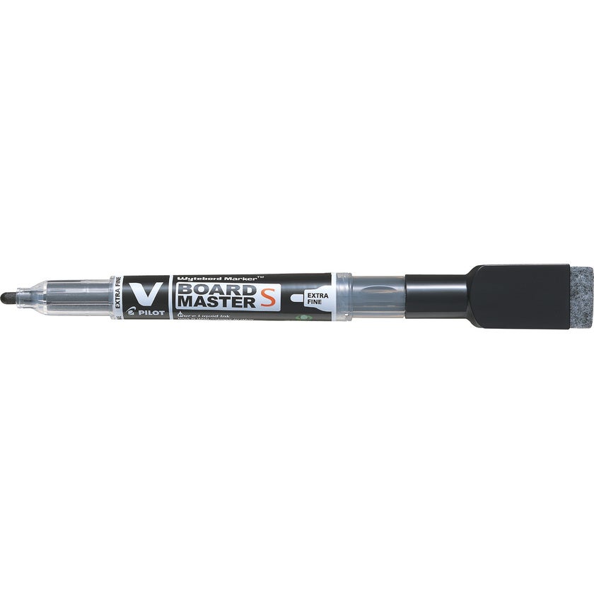 Pilot V-Board Master S är en påfyllnadsbar whiteboardpenna som skriver till sista droppen. WB-pennans smarta bläcksystem ger ett konstant bläckflöde, med ett bläck som inte bleknar. Pennan har ett integrerat sudd och en magnetremsa.