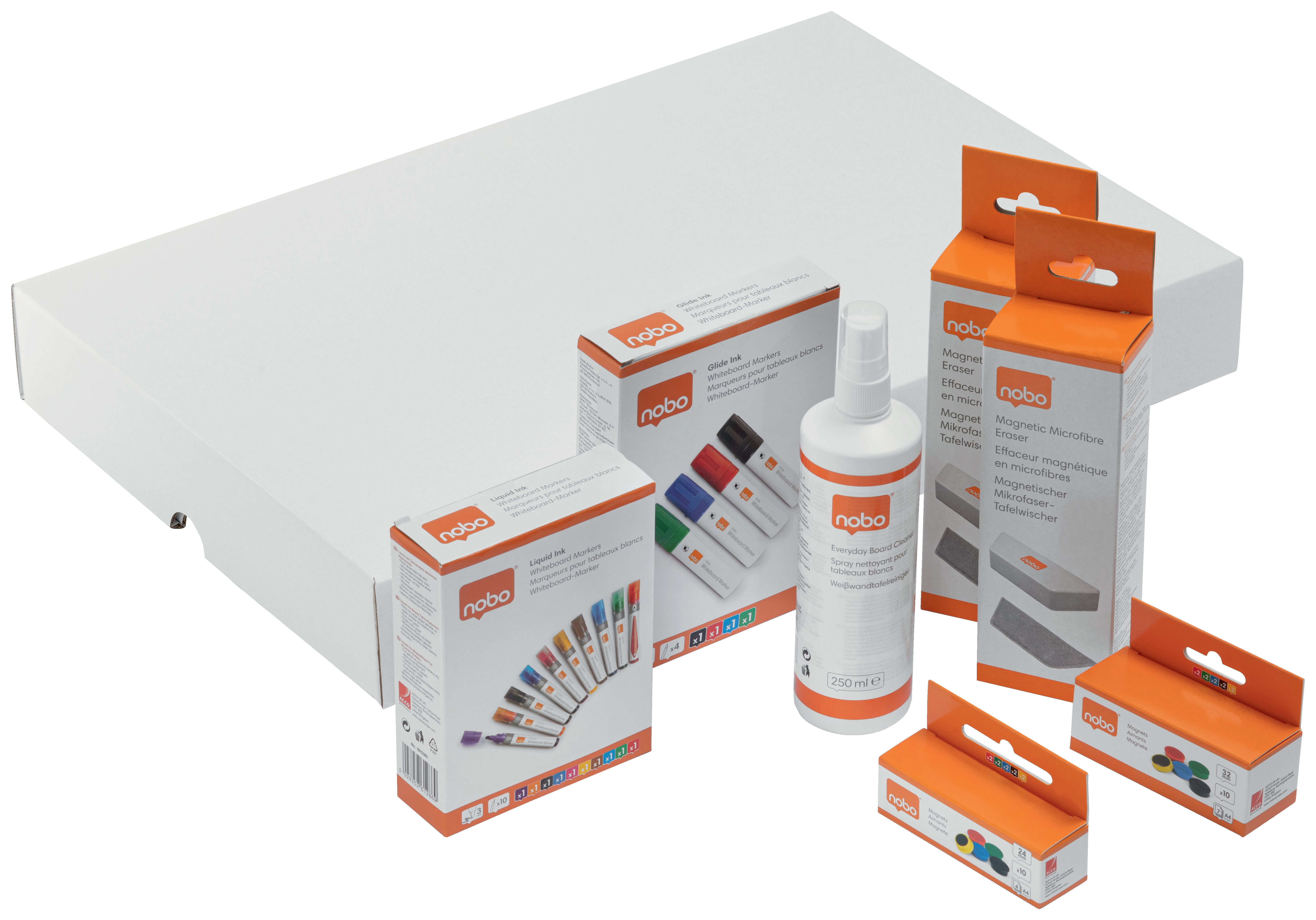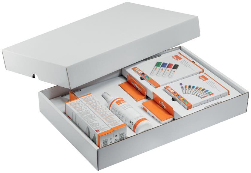 Tillbehörskit Move & Meet Whiteboard. Det mobila whiteboardsystemet Move & Meet erbjuder ultimat flexibilitet i alla arbetsmiljöer. Enkelt konfigurerade för att uppfylla dina behov. Detta tillbehörspaket är förpackat i en snygg förvaringsbox som passar perfekt på systemets mobila bas och innehåller allt du behöver för att komma igång.