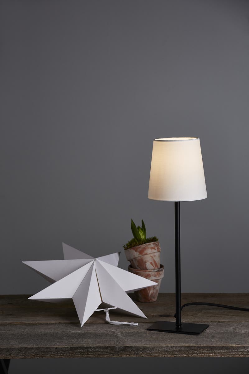 Lampfot Frozen med 2 skärmar – skärm & stjärna. Frozen stjärna på fot, vit pappersstjärna + skärm med svart fot. Stjärnan är den perfekta dekorationen till jul och advent. Placera den i ett fönster eller på en skänk. Sprider härlig julstämning, när julen är över byter du till skärmen och får en perfekt dekoration hela året.