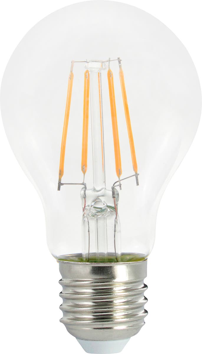 LED filamentljuskälla Airam med klara kupor. Ljuset kommer från tunna filamenttrådar med LED-dioder. Filamentljuskällor passar i synnerhet i kristallkronor. Ljuskällornas färgtemperatur är behagligt varmvit.