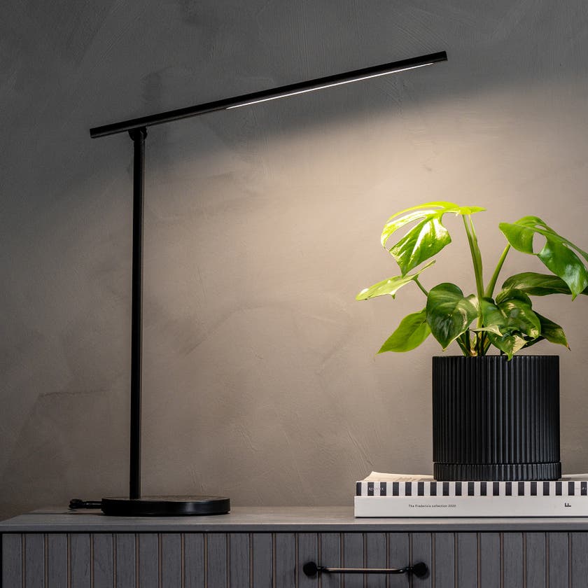 Skrivbordslampa ECO kombinerar modern funktionalitet med tidlös design och blir ett självklart inslag på varje skrivbord eller arbetsplats. Med fem justerbara ljusstyrkor kan du enkelt anpassa belysningen efter behov – från fokuserat arbetsljus till mjukare ljus för en mer avslappnad stund. Lampans flexibla arm kan vinklas mellan 0 och 130 grader, vilket ger dig full frihet att hitta den perfekta ljusvinkeln oavsett situation. I lampfoten finns dessutom ett praktiskt USB-uttag som gör det enkelt att ladda mobilen eller andra enheter direkt vid arbetsplatsen.