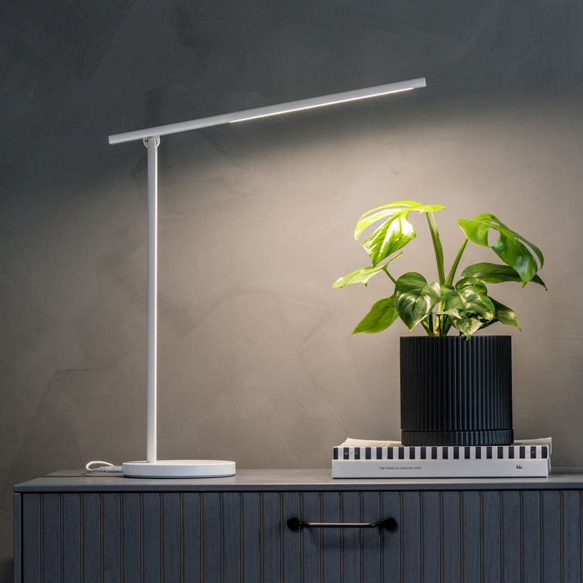 Skrivbordslampa ECO kombinerar modern funktionalitet med tidlös design och blir ett självklart inslag på varje skrivbord eller arbetsplats. Med fem justerbara ljusstyrkor kan du enkelt anpassa belysningen efter behov – från fokuserat arbetsljus till mjukare ljus för en mer avslappnad stund. Lampans flexibla arm kan vinklas mellan 0 och 130 grader, vilket ger dig full frihet att hitta den perfekta ljusvinkeln oavsett situation. I lampfoten finns dessutom ett praktiskt USB-uttag som gör det enkelt att ladda mobilen eller andra enheter direkt vid arbetsplatsen.