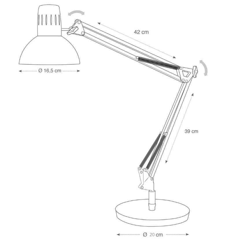 Skrivbordslampan Architect - En tidlös design med den parallellstyrda, fjäderbelastade armen på 39 + 42 cm, gör det lätt att ställa in lampan och ser till att lamphuvudet är parallellt med skrivbordet. Elegant och modern tack vare sin industriella stil och sin färg. Flexibel belysning tack vare den ledade dubbla armen. Enkel justering med en justerbar lampskärm.