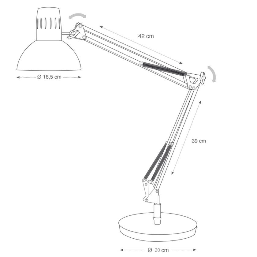 Skrivbordslampan Architect - En tidlös design med den parallellstyrda, fjäderbelastade armen på 39 + 42 cm, gör det lätt att ställa in lampan och ser till att lamphuvudet är parallellt med skrivbordet. Elegant och modern tack vare sin industriella stil och sin färg. Flexibel belysning tack vare den ledade dubbla armen. Enkel justering med en justerbar lampskärm.