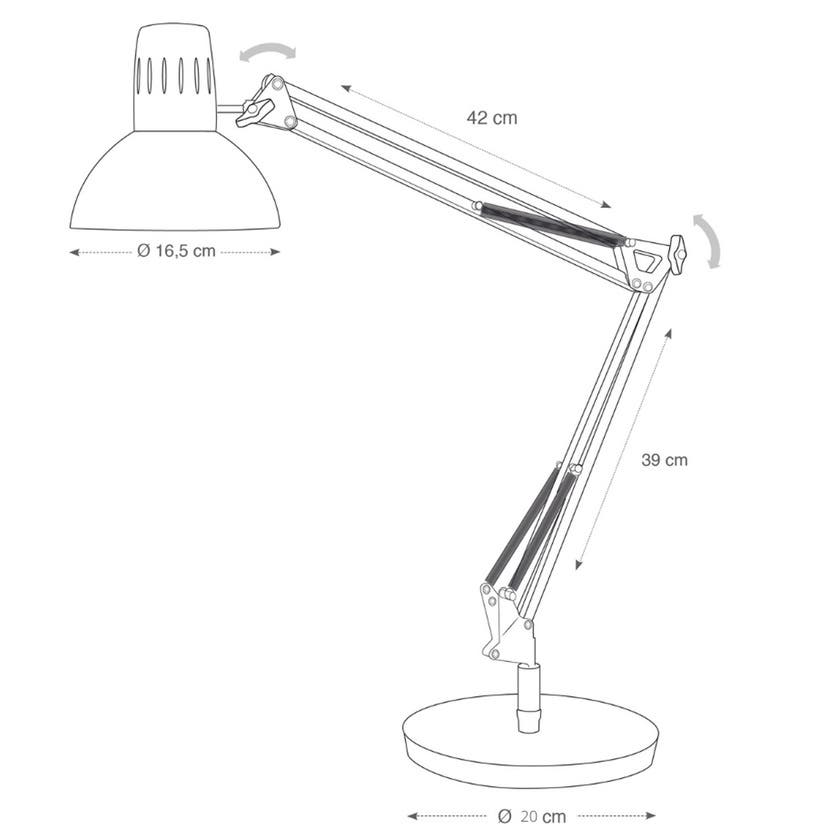 Skrivbordslampan Architect - En tidlös design med den parallellstyrda, fjäderbelastade armen på 39 + 42 cm, gör det lätt att ställa in lampan och ser till att lamphuvudet är parallellt med skrivbordet. Elegant och modern tack vare sin industriella stil och sin färg. Flexibel belysning tack vare den ledade dubbla armen. Enkel justering med en justerbar lampskärm.