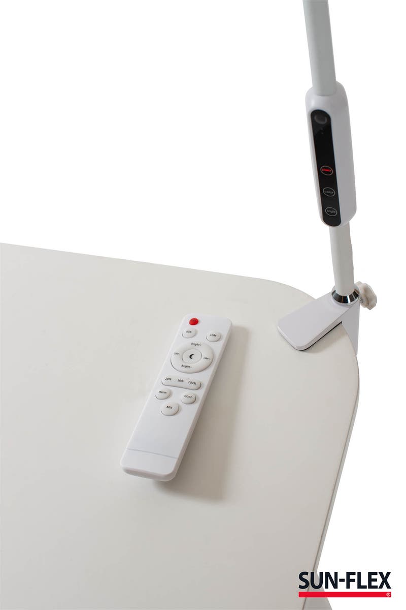 SUN-FLEX®DESKLITE är en armatur framtagen för den moderna arbetsplatsen. Tack vare dess flexibilitet i både inställningar och funktioner passar den till alla arbetsplatser på kontor såväl som till hemmakontoret. Produktens långa arm som enkelt positioneras efter önskemål ger ljus där man önskar. Armaturen är enkel att hantera antingen med touchkontroller på armen eller via den medföljande fjärrkontrollen. Dimmerfunktion, färgtemperatursjustering och automatisk avstängning för att spara ström, ger SUN-FLEX®DESKLITE alla funktioner som någon kan önska sig. Med höga och noggrant utvalda kvalitetsdetaljer som LED komponenter, materialval såsom aluminium och ABS-plast säkerställs en produkt med yttersta kvalitet och livslängd.