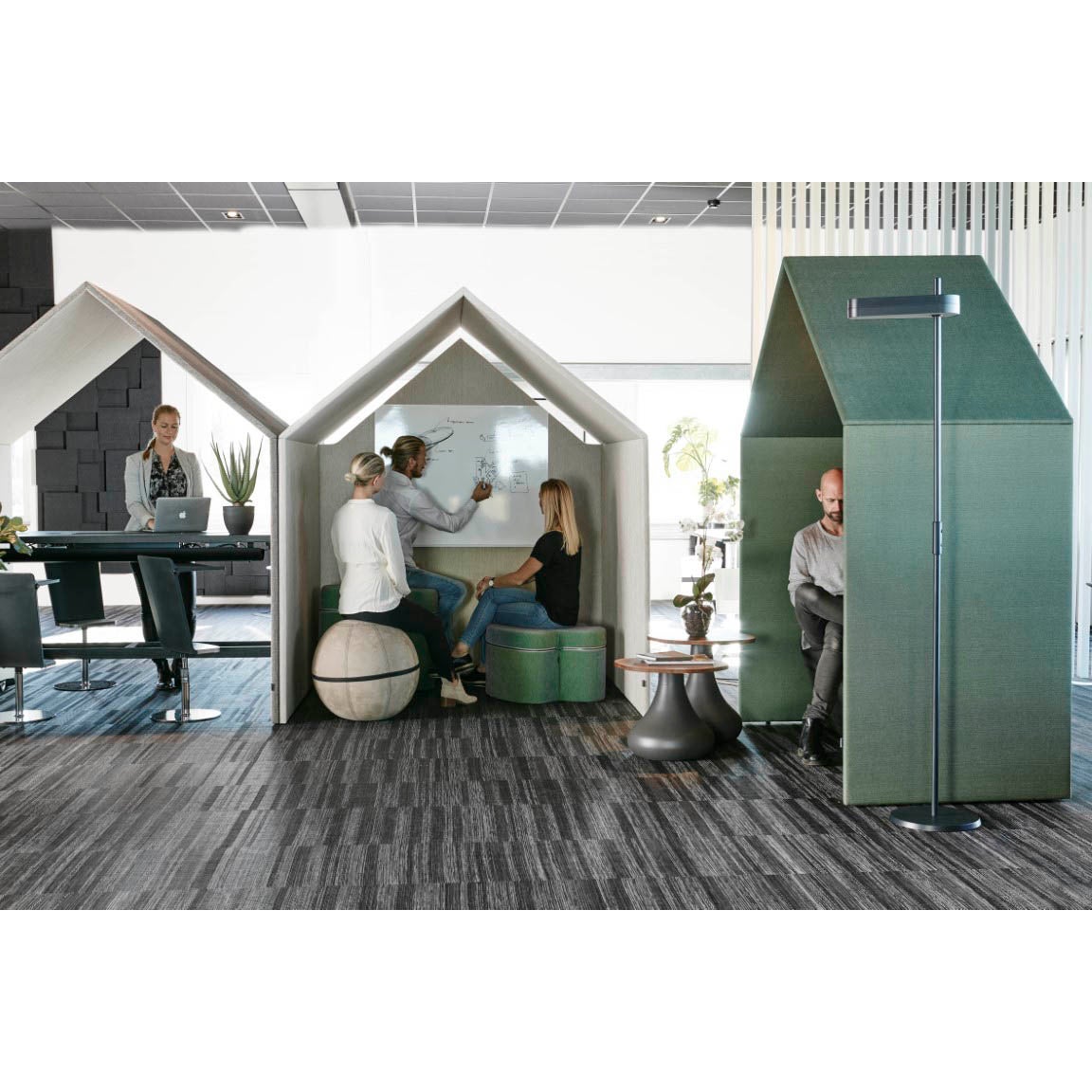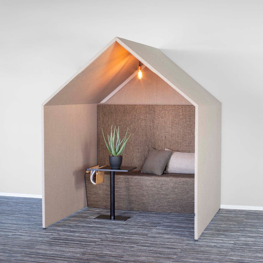 The Hut - detta ljudabsorberande hus kan användas som en individuell arbetsplats, ett litet sitt-och-stå mötesrum eller en avkopplingsyta tillsammans med The Hut Sofa. Soffan ingår EJ.