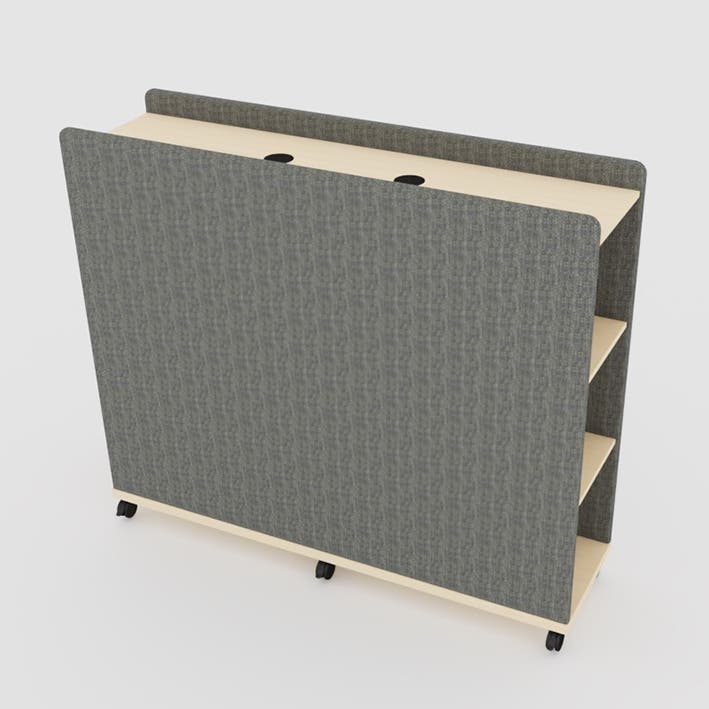 Moving Wall Bridge är en ljudabsorberande rumsavdelare med förvaring och diskret kabelsanering. Låsbara hjul. 40 mm tjock ljudabsorbent på båda sidor. Förvaring på båda kortsidor med ett djup på 500 mm. Hyllplan på båda kortsidorna i asklaminat.. 2 st Integrerade kabelgenomföringar i toppskivan.