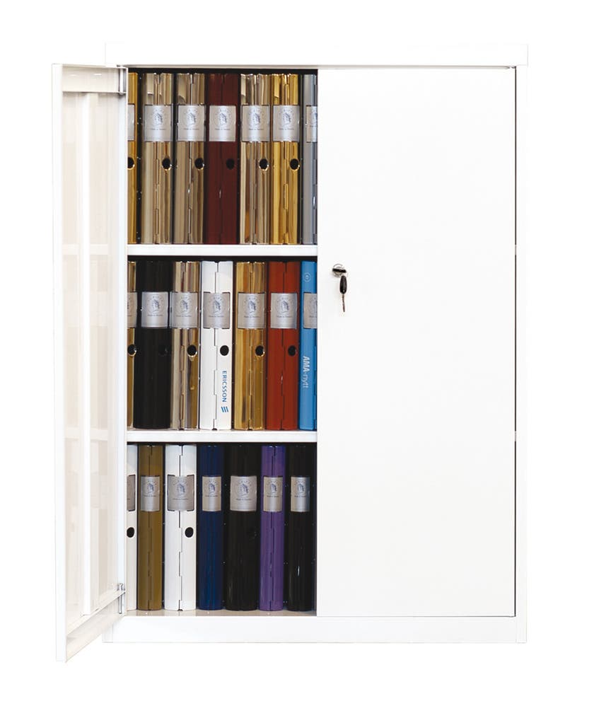 Förvaringssåp Office 1100 har helsvetsade och färdigmonterade förvaringsskåp med två fasta hyllplan anpassade för pärmar. Lås med två nycklar.