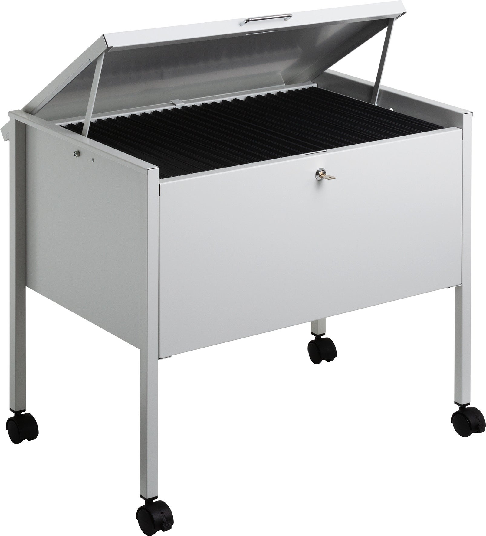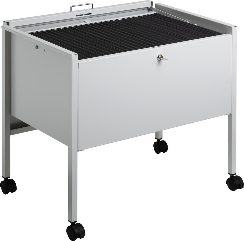 Arkivera och organisera dokument i hängmappar som förvaras i hängmappsvagnar med hjul. Låsbar metallvagn med reptålig polyesterbeläggning som rymmer ca 80 st hängmappar i A4-format. Vagnen är utrustad med 4 st svängbara länkhjul, varav 2 st har broms. Lätt att förflytta och stabil när den är "parkerad".