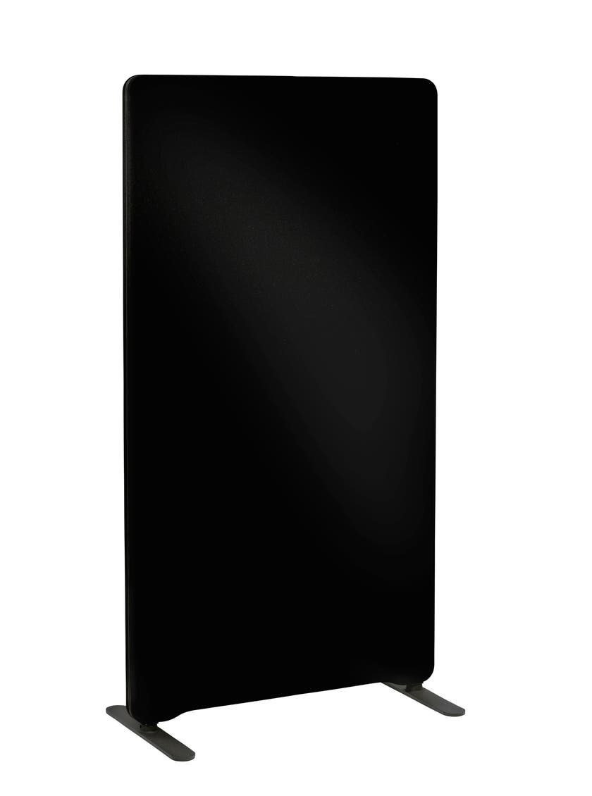 Kontorsskärmen är uppbyggd av en massiv trästomme och en 40 mm ljudabsorberande mineralsullsskiva. Golvskärmen har en stilren design som går att få i många olika storlekar samt färger.
