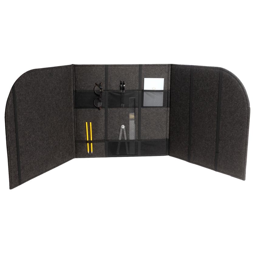 MyPauze ljuddämpande bordsskärm för effektiv avskärmning mellan elever. Perfekt för ökad koncentration och inlärning samt vid provskrivning. Skärmen är utrustad med förvaringsfack, pennhållare och remmar för förvaring av papper och studiematerial. Skärmen är upphängningsbar och hopvikbar vilket gör den till en platsbesparande ljudabsorbent. Finns i två olika storlekar.