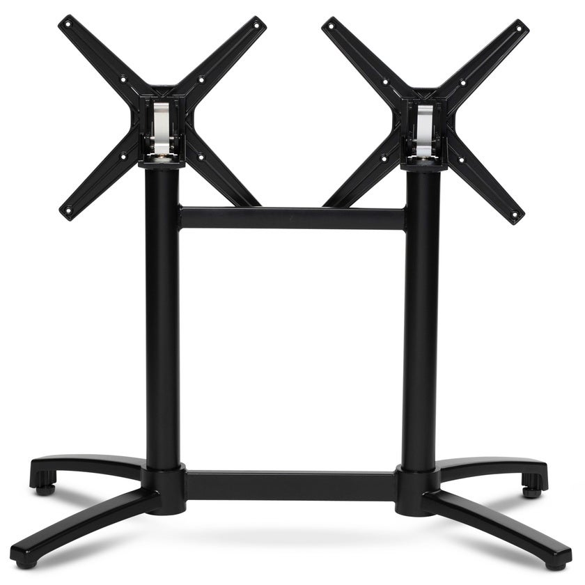 Barcelona är ett fällbart bordsstativ som gör hantering och förvaring avsevärt mycket enklare. Genom en snabb manöver fälls bordsskivan ned längs sidan av stativet och skapar helt nya förvaringsmöjligheter. Barcelona är tillverkat av svart, pulverlackerad aluminium.