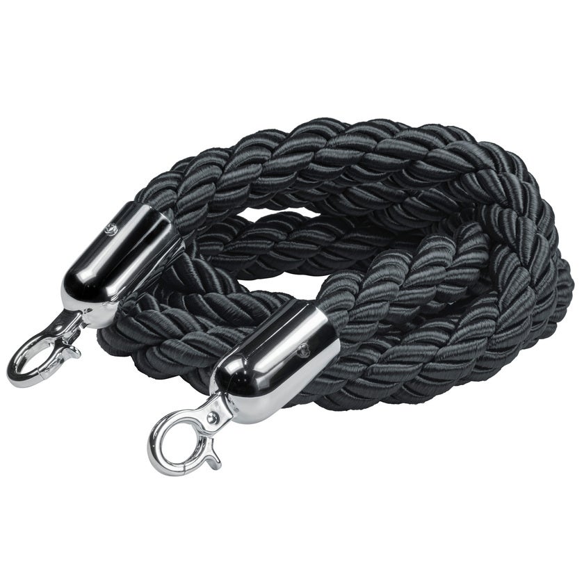 Flätat, svart rep med silverfärgade krokar. Tillbehör till köstolpe med art nr 8566934.
