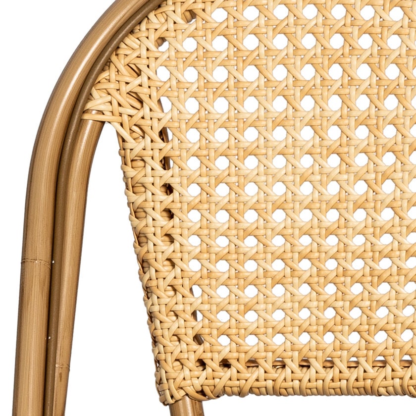 Stolen Calais har stommen tillverkad av Ø 28 mm aluminium i bambulook som bidrar till en naturlig känsla. Sits- och rygg består av ljus fiberrotting som ger ett varmt intryck. Stolen har kryssförstärkning samt flätförstärkt sits.
