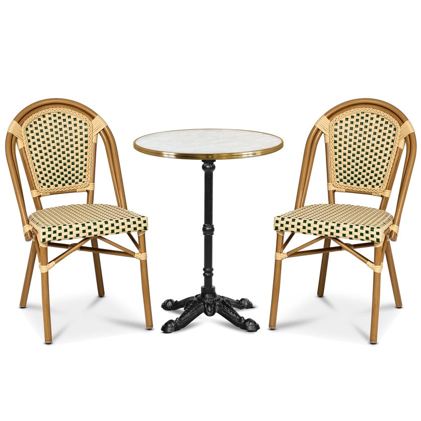 Få personer har lyckats undgå att sitta i en stol ur serien Paris från Xirbi. Många caféer och restauranger har denna bästsäljare som sitt förstahandsval. Det är inte svårt att förstå varför. Ramen är uppbyggd av en lackerad aluminiumstomme med bamboo-look på Ø 28 mm för att säkra en låg vikt. Detta gör den enkel att hantera och stapla, utan att ta upp för mycket utrymme. Sits och rygg är tillverkade av fiberrotting. Paris-serien är ett bekvämt och hållbart val.
