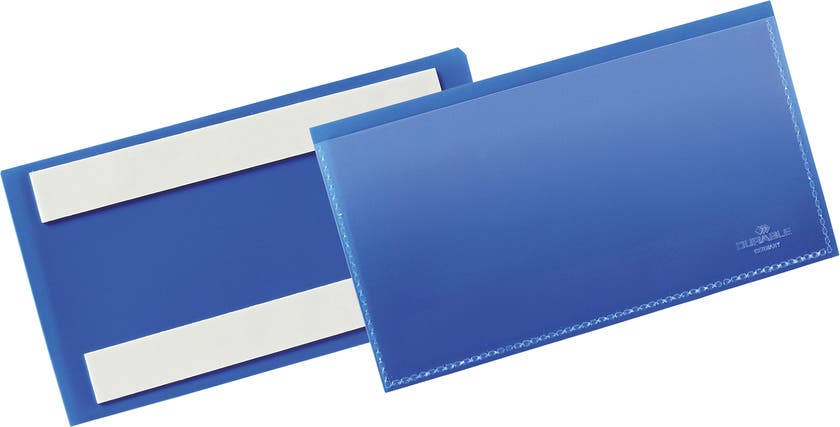 Tydlig och översiktlig märkning av hyllor, skåp , dörrar, pallar, containrar och andra utrymmen förbättrar och effektiviserar arbetsprocessen på lager och i produktionsanläggningar. De självhäftande etiketthållarna av slitstark polypropylene går att läsa med skanner och skyddar de utbytbara etiketterna från smuts. Två klisterremsor på baksidan gör att fickan sitter på plats. Gratis mall för etiketten finns på www.duraprint.se. * Blå * Innermått: 100 x 38 mm (B x H) * Yttermått: 113 x 53 mm (B x H) Då denna vara specialbeställs vid order, omfattas den inte av Office Depots retur-/ångerrätt vid köp i egenskap av företag eller annan juridisk person.