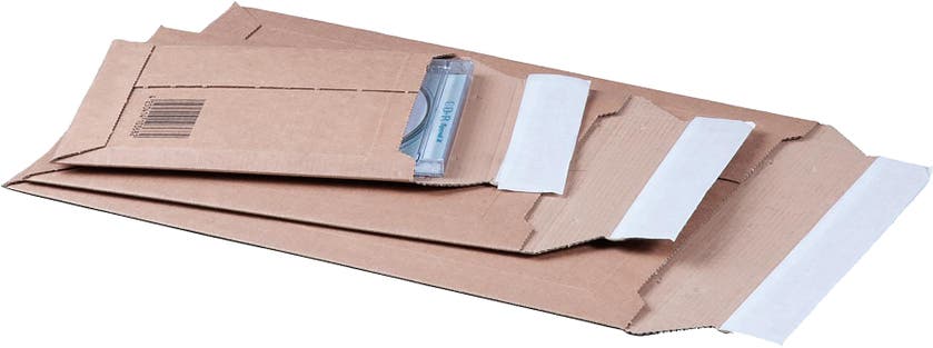 Kartongpåse med remsa - Miniwellpåse. Stöttålig och robust wellpapp i hög kvalitet, som skyddar din inlaga hela vägen till mottagaren.