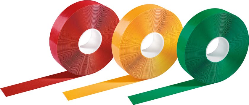Självhäftande, extra stark markeringstejp för inomhusbruk. Används för permanent markering av områden som behöver uppmärksammas t ex trafikzoner och spärrområden.