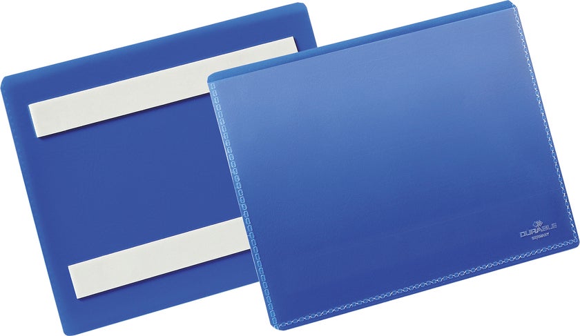 De självhäftande etiketthållarna av slitstark polypropylene går att läsa med skanner och skyddar de utbytbara etiketterna från smuts. Två klisterremsor på baksidan gör att fickan sitter på plats. Gratis mall för etiketten finns på www.duraprint.se.