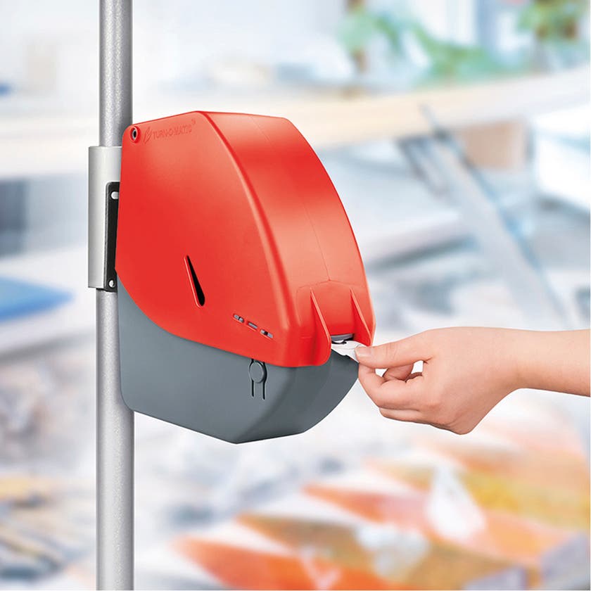 Nummerautomat/dispenser Meto D900-röd Kösystem. Modern och robust design. Mycket enkel laddning av T90 biljetter.