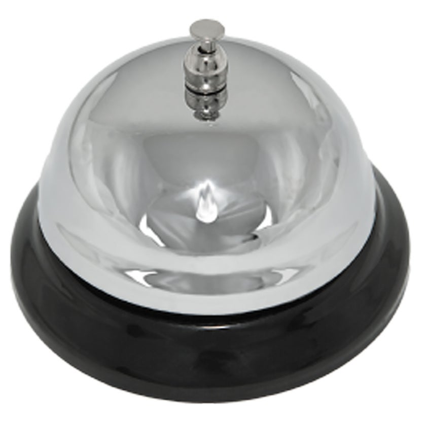Klassisk receptionsklocka i metall som passar lika bra i hotellobbyn som i receptionen eller i butiken. Påkallar effektivt uppmärksamheten.