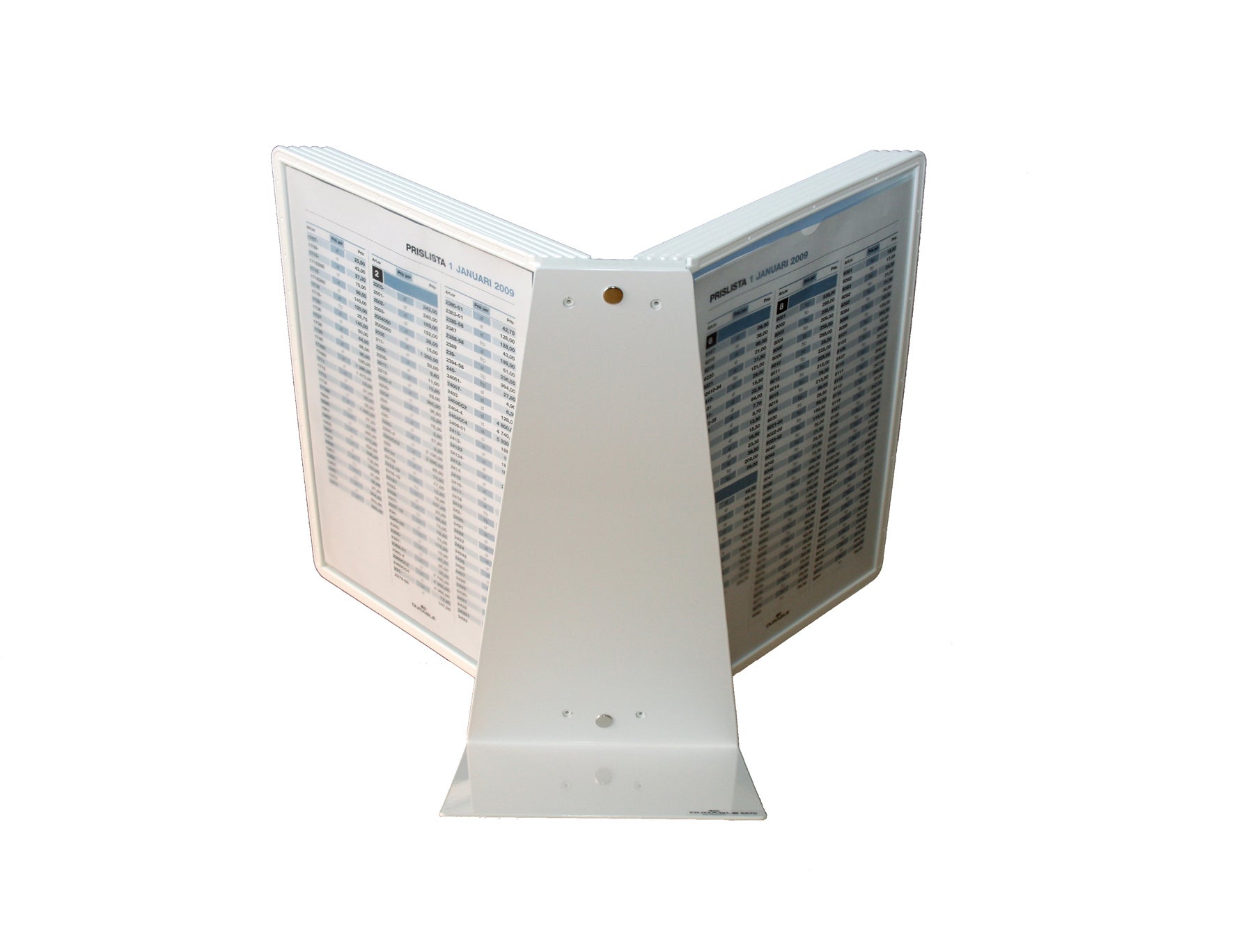 Slitstarkt och komplett panelsystem Durable Vario av metall med A4-paneler av reflexfri polypropylenplast för bordsplacerig. Smidig och funktionell design, tar liten plats och är enkel att montera och med högsta funktionalitet. Du får snabb tillgång till information som du använder ofta och dagligen. Blädderstället används till exempel i butiker, på kontor, verkstäder mm. Bordsstället skyddar dina dokument samtidigt som du får en bra översikt. De miljövänliga panelerna är enkla att ta i och ur. Bordsstället skyddar dina dokument samtidigt som du får en bra översikt. För både kontorsbruk och presentation. Köp hem extra panel Sherpa som finns i olika färger. * A4-format * Finns i flera färger * Vingregister * 10 st paneler samt rubrikhållare 58 mm *  5 års garanti