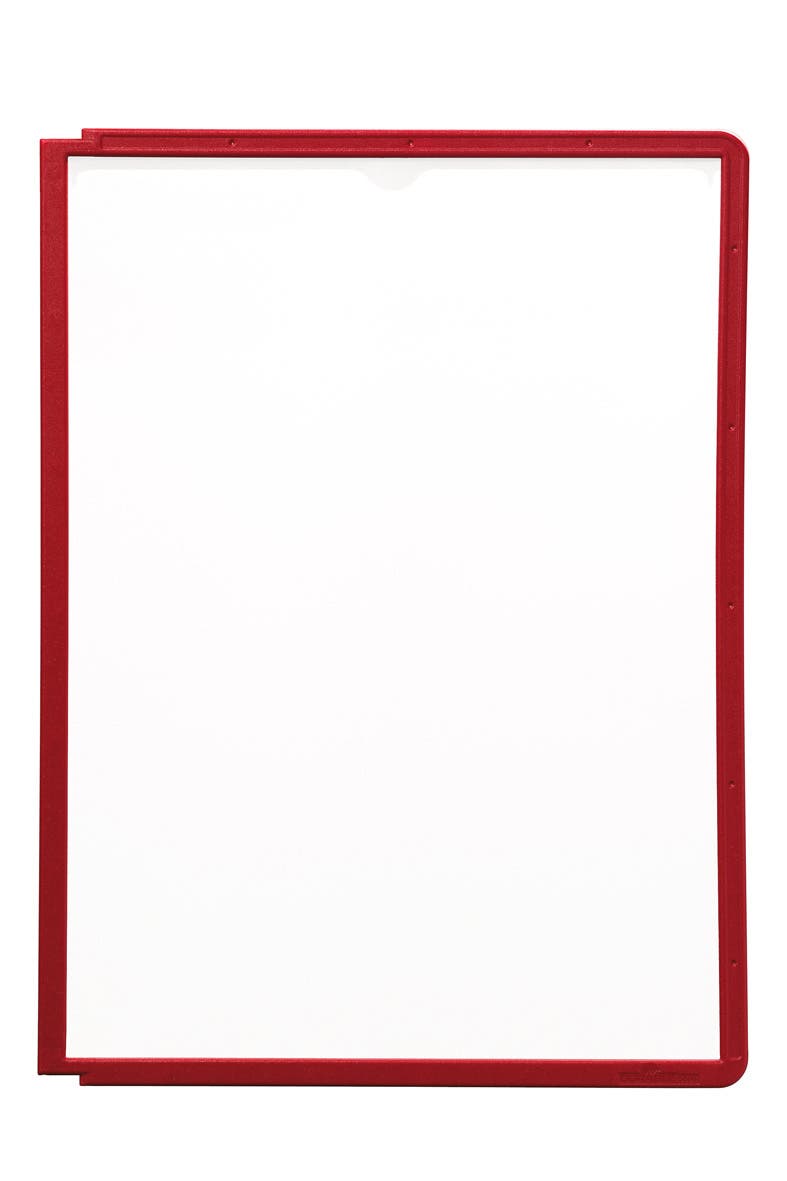 Matt reflexfri PP-plast med färgad ram, copy-safe. Passar i alla Durable´s panelsystem. Vid insättning och borttagning av fickorna är det bra att böja fickan lite försiktigt i mitten längs med inre långsidan så går det lätt att sätta dit och ta bort fickan utan att piggarna i hållaren skadas.