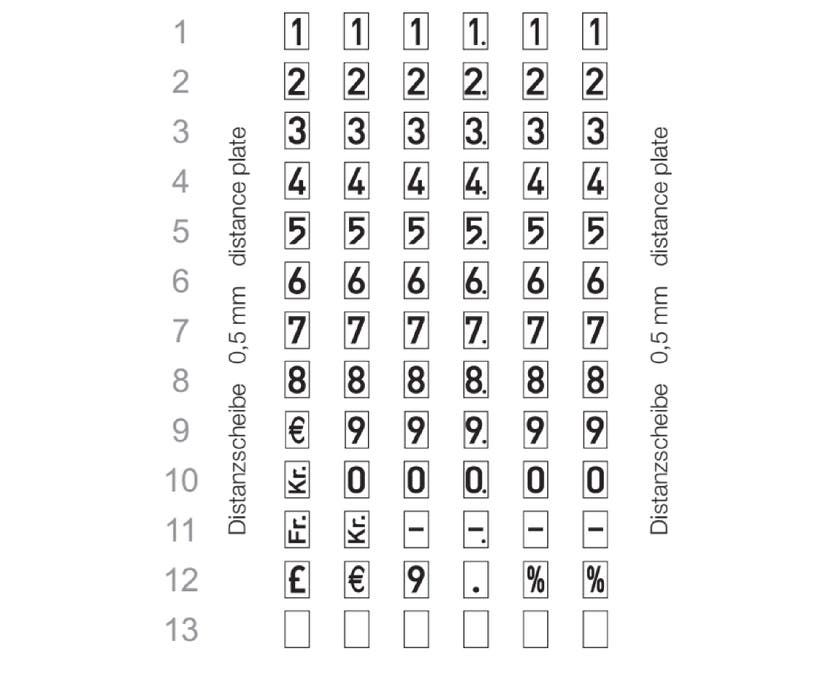 Professionell, ergonomisk greppet, hög repetitionshastighet. Behändig, lät och användningsvänlig. Skriver max. 6 tecken, 1 rad. Siffror: 0-9 & Valutor: kr och € samt grundläggande skiljetecken.