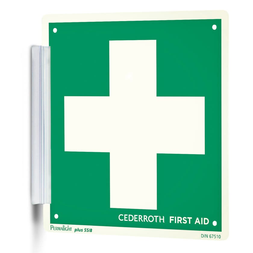Självhäftande skylthållare för montering som flaggskylt eller hängande från taket. Sätts upp för att tydliggöra viktiga platser, exempelvis första-hjälpen-stationer. Produkten är CE-märkt.