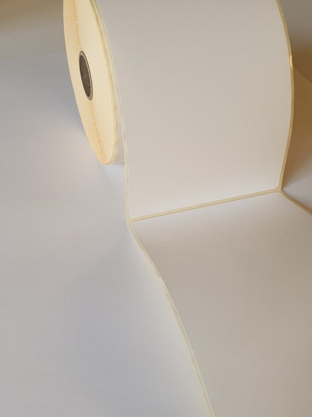 Etikett till Zebraskrivare. Etikett , thermo Eco, Permanent klister. 100 x 150 25,4 kärna 500 etiketter per rulle / perforering mellan etiketterna