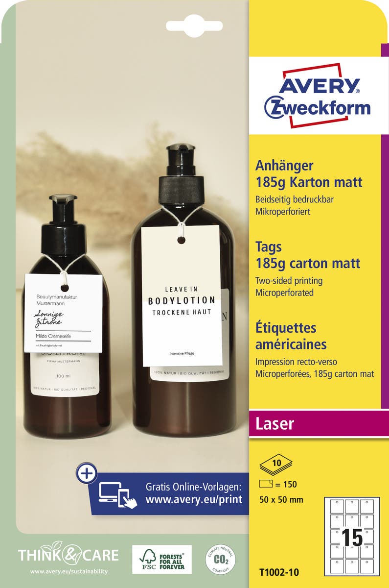 | Namn | Hängetikett 50x50mm 185g 150/fp |