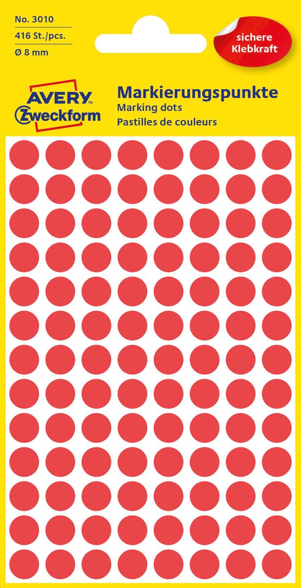Etikett 8mm rund röd 416/fp