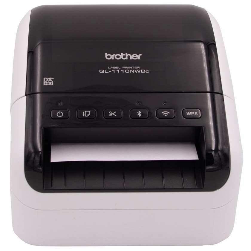 Etikettskrivare Brother QL‑1110NWBC – bred, snabb och flexibel utskrift för adresslappar och streckkoder. Den professionella etikettskrivaren har en utskriftsbredd på 4 tum (101,6 mm), vilket gör den kompatibel med de flesta programvaror för fraktetiketter.