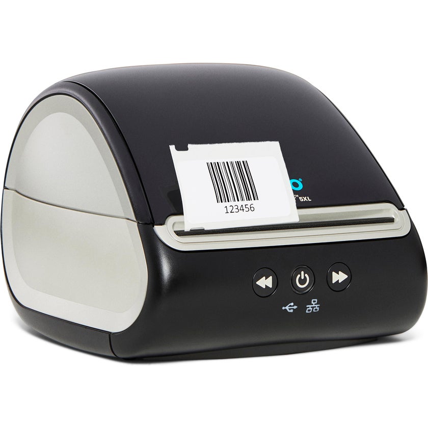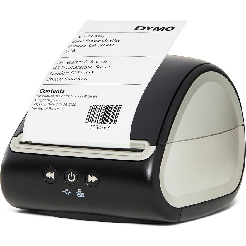 Etikettskrivare DYMO LabelWriter 5XL. Fraktetikettskrivare med extra bredd och hög utskriftshastighet som använder direkttermisk utskriftsteknik - inget behov av bläck eller toner. Skräddarsy och skriv ut adress-, filmapps- och streckkodsetiketter, namnbrickor med mera. Automatisk ny etikettigenkänningsfunktion. Känner av storlek på etikett samt hur många etiketter som finns kvar. Ansluts till den intelligenta DYMO Connect for Desktop-programvaran för en rad olika designfunktioner. Minskar avfall genom att endast skriva ut den önskade mängden individuella etiketter.