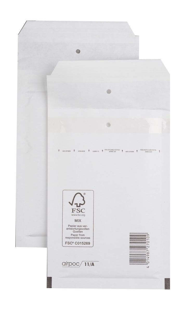 Bubbelpåse Airpoc av 80 gram kraftpapper. En fodrad och laminerad paketlösning med en insida klädd i bubbelplast av polyeten (PE). Lämplig för både internet- och postorderförsäljning och för privatpersoner som vill posta presenter eller ömtåliga saker. Bubbelpåsen är ett perfekt emballage för småvaror såsom CD-skivor, böcker, varuprover och smycken. Påsen skyddar mot stötar, slag och tryck under transporten och ser till att din försändelse kommer fram hel till mottagaren. För miljövänlig sortering, skilj enkelt folien från påsen. Klaffen är försedd med täckremsa. Välj den storlek som passar dina behov bäst. Vi erbjuder både större och mindre varianter. * Förpackningen delas ej * Miljömärkt: FSC-mix
