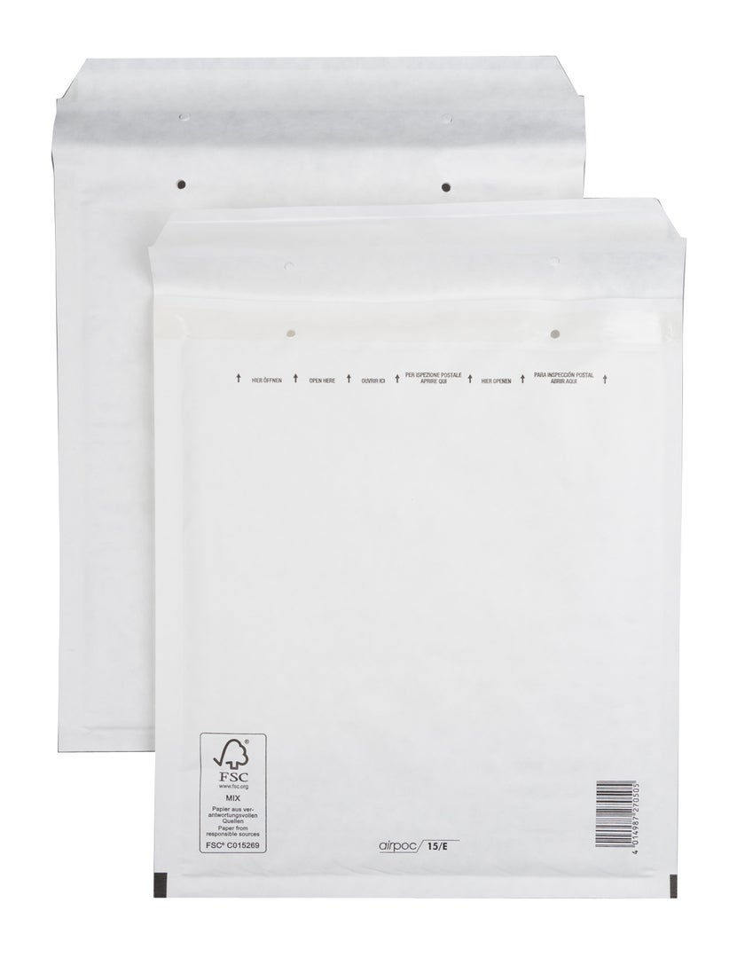 Skyddande är dessa vadderade bubbelpåsar airpoc. Sänd dina produkter tryggt och säkert i de vadderade kuverten / påsarna. Varupåsar av 80 gram kraftpapper och foder av bubbelplast. Påsen är laminerad av polyetenplast (PE). Återvinningsbar då folien kan lätt avskiljas från påsen för miljövänlig sortering. Självhäftande klaff med täckremsa. Passar bl.a. för dig som håller på med: Media, Marknadsföring, Reklam, internet försäljning och hantverkstillverkare. * Klaffen är försedd med täckremsa * Vit * Låg vikt * 10-pack * Miljömärkt: FSC Mix