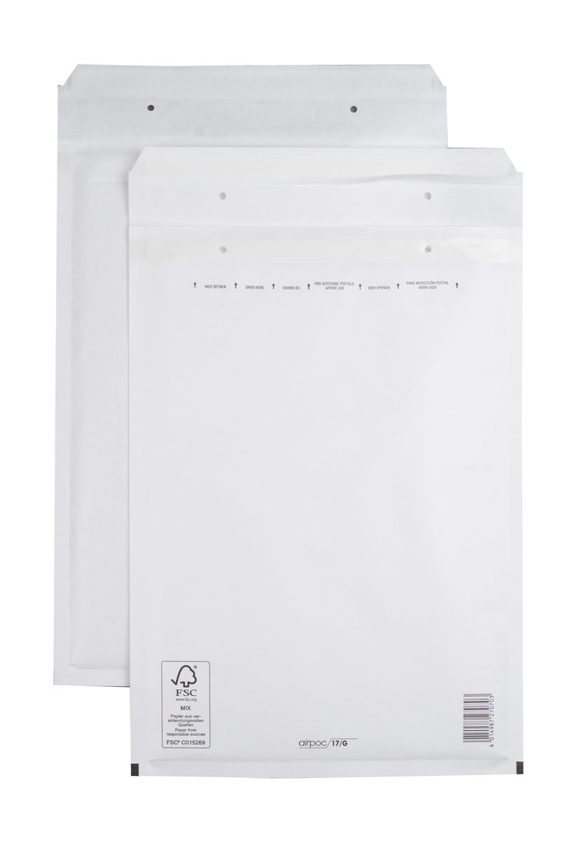Bubbelpåse Airpoc av 80 gram kraftpapper. En fodrad och laminerad paketlösning med en insida klädd i bubbelplast av polyeten (PE). Lämplig för både internet- och postorderförsäljning och för privatpersoner som vill posta presenter eller ömtåliga saker. Bubbelpåsen är ett perfekt emballage för småvaror såsom CD-skivor, böcker, varuprover och smycken. Påsen skyddar mot stötar, slag och tryck under transporten och ser till att din försändelse kommer fram hel till mottagaren. För miljövänlig sortering, skilj enkelt folien från påsen. Klaffen är försedd med täckremsa. Välj den storlek som passar dina behov bäst. Vi erbjuder både större och mindre varianter. * Förpackningen delas ej * Miljömärkt: FSC-mix