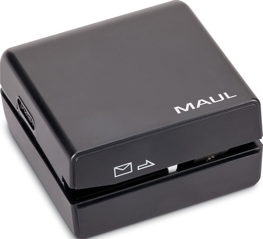 Batteridriven brevöppnare Maul. Skärhuvud av rostfritt stål och hölje av slagtålig plast. Snittbredd ca 2,5 mm. 2 års garanti. Drivs AA-batterier (4x1,5 V batterier ingår).