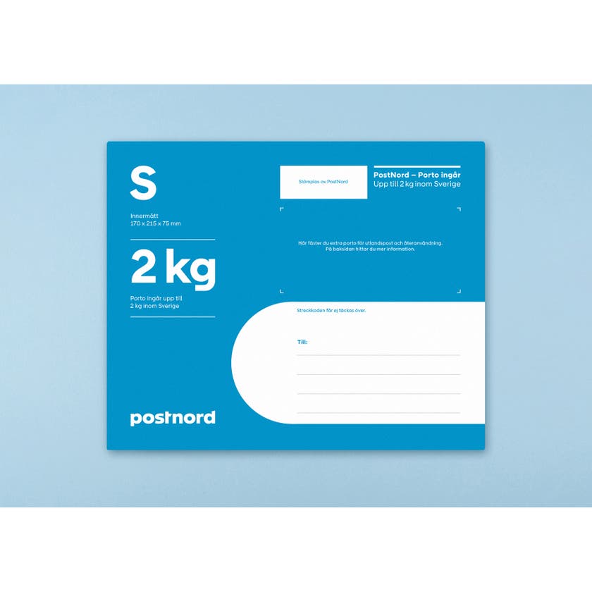 Box S med inrikes porto upp till 2 kg ingår. Enkelt allt i ett, kartong och porto.