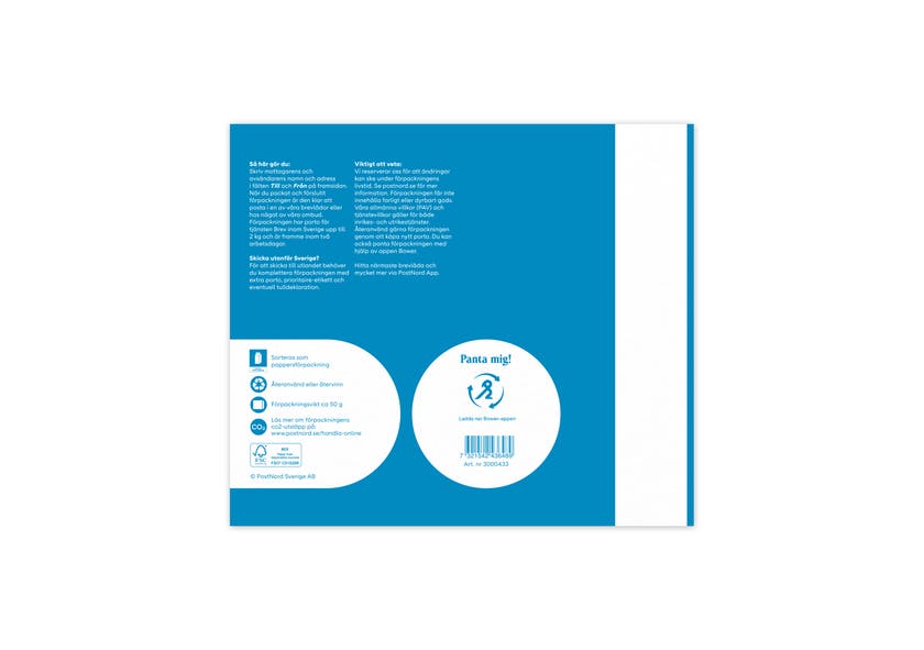 En vadderad påse med självhäftande förslutning. En enkel allt-i-en lösning där porto upp till 2 kg ingår. Vadderingen består av kascherat papper. Påsen postas i någon av Postnords många brevlådor eller lämnas till ett postombud. Påsen levereras direkt till mottagarens brevlåda. Om försändelsen är för stor för att rymmas i brevlådan får mottagaren en avisering om att hämta den på närmaste utlämningsställe.