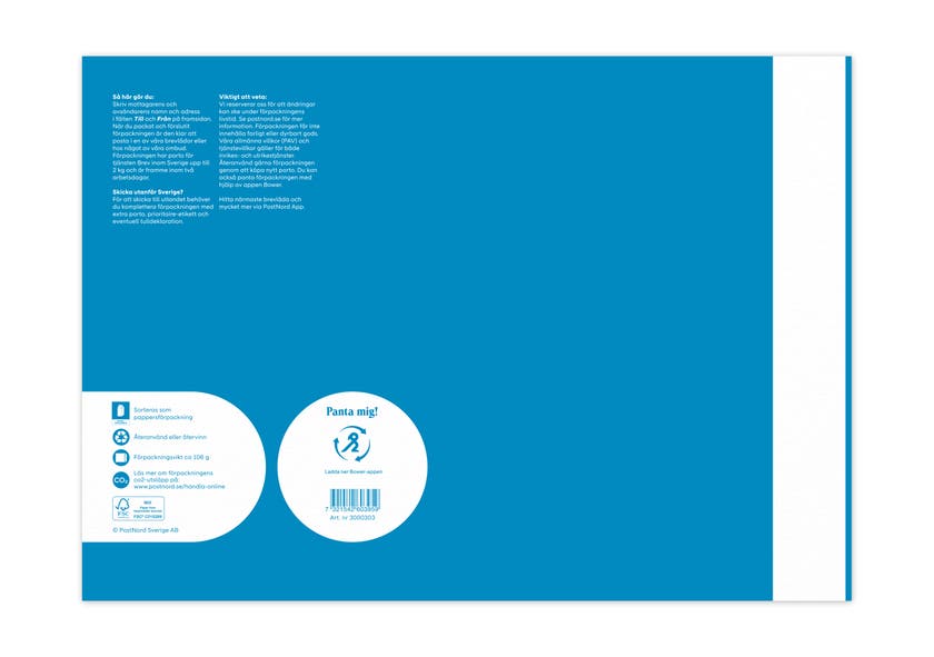 En vadderad påse med självhäftande förslutning. En enkel allt-i-en lösning där portot upp till 2 kg ingår. Vadderingen består av kascherat papper. Påsen postas i någon av Postnords många brevlådor eller lämnas till ett postombud. Påsen levereras direkt till mottagarens brevlåda. Om försändelsen är för stor för att rymmas i brevlådan får mottagaren en avisering om att hämta den på närmaste utlämningsställe.
