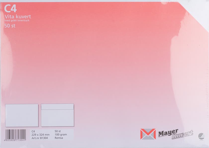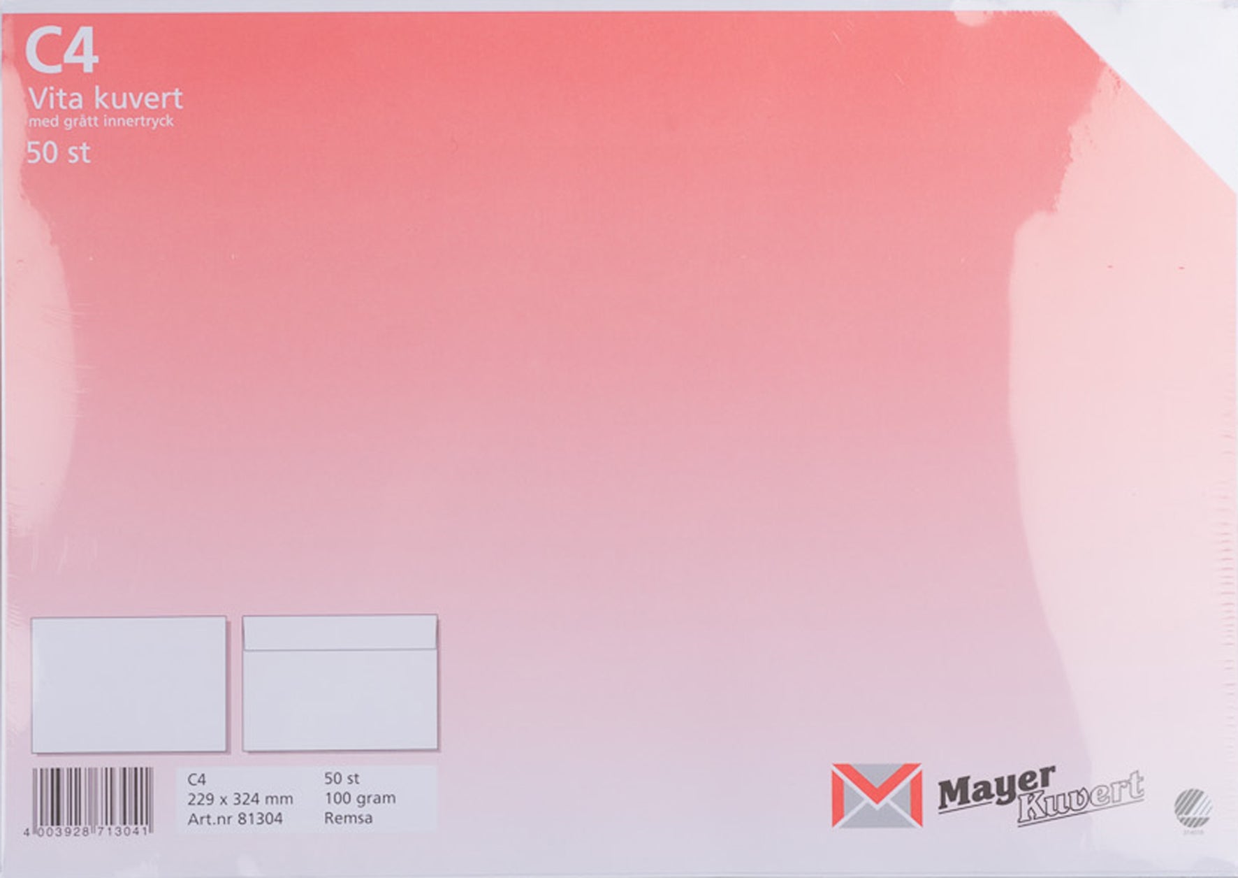 | Namn | Kuvert C4 vit med remsa 50 st/fp |